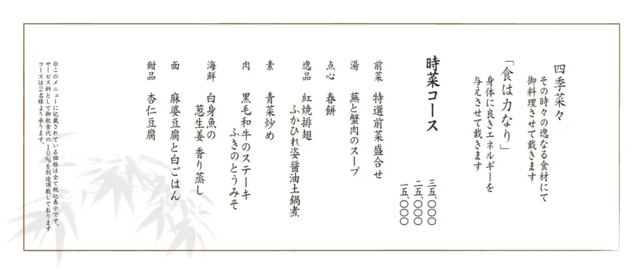 ※メニューやコースの価格及び内容は、仕入状況等によって予告なく変更となる場合があります。あらかじめご了承ください。