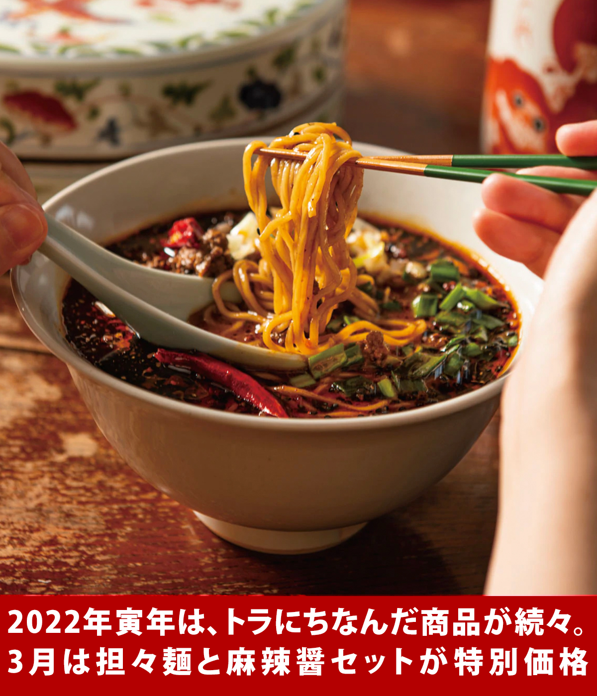 「麻辣醤」は南青山 虎萬元の店頭販売から始まり、全国からのお問合せが多く通信販売に至った人気調味料。担々麺に加えればさらに本格的な味を楽しめます。